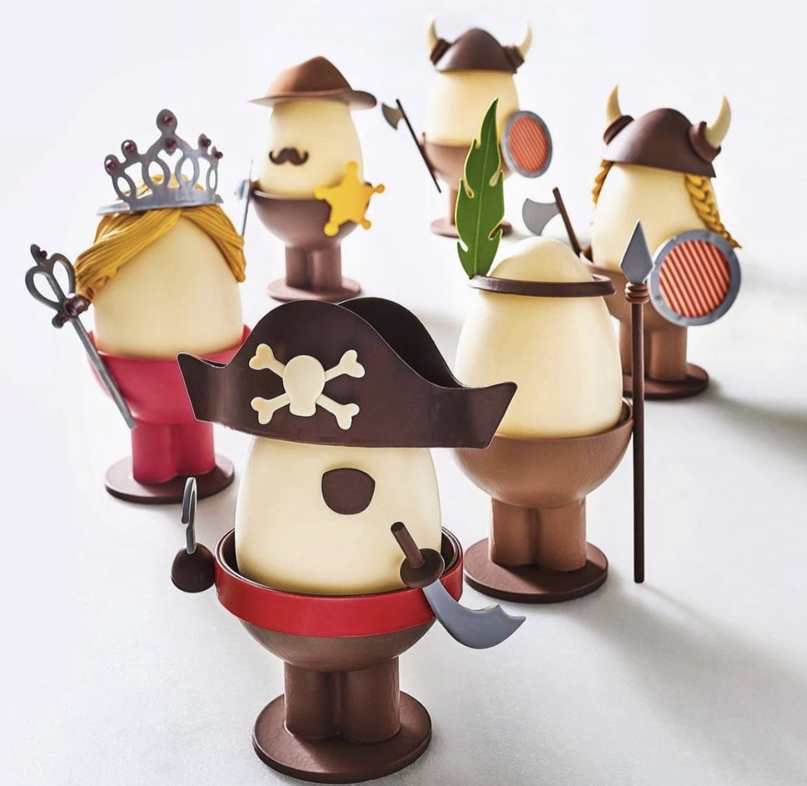 A los diferentes personajes universales, mágicos y simpáticos como la princesa, el pirata, la vikinga, el vaquero y el barco este año se suman el astronauta y el extraterrestre. Un total de siete piezas únicas que constituyen la mezcla perfecta entre tradición e innovación, rigurosamente trabajadas de manera artesanal y con un chocolate francés de primera calidad, a la altura de los paladares más exigentes.